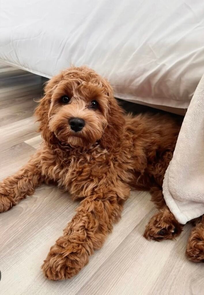 |”We got our baby from Jeannie in May of 2024. I just contacted Jeannie well over 2 years ago about cavapoo’s. She was so patient with me but I was not in a hurry to get a puppy and she was fine with how picky I was and sometimes how ridiculous my questions were. Lol other breeder likely wouldn’t have been so patient. I strongly believe that’s what makes Jeannie so special. She is in it for the love of dogs and the joy they bring. Long story shortened, after I decided what I wanted, I waited 8 months for the perfect for me puppy to be born per Jeannie’s recommendation. She nailed it. Fynn is perfect for my family and couldn’t be more loved. He is smart, loyal, playful, cuddly, confident and just a bombproof puppy thanks to the methods Jeannie used in raising the pups. If Fynn ever needs a sibling I will be going back to Jeannie for sure!”